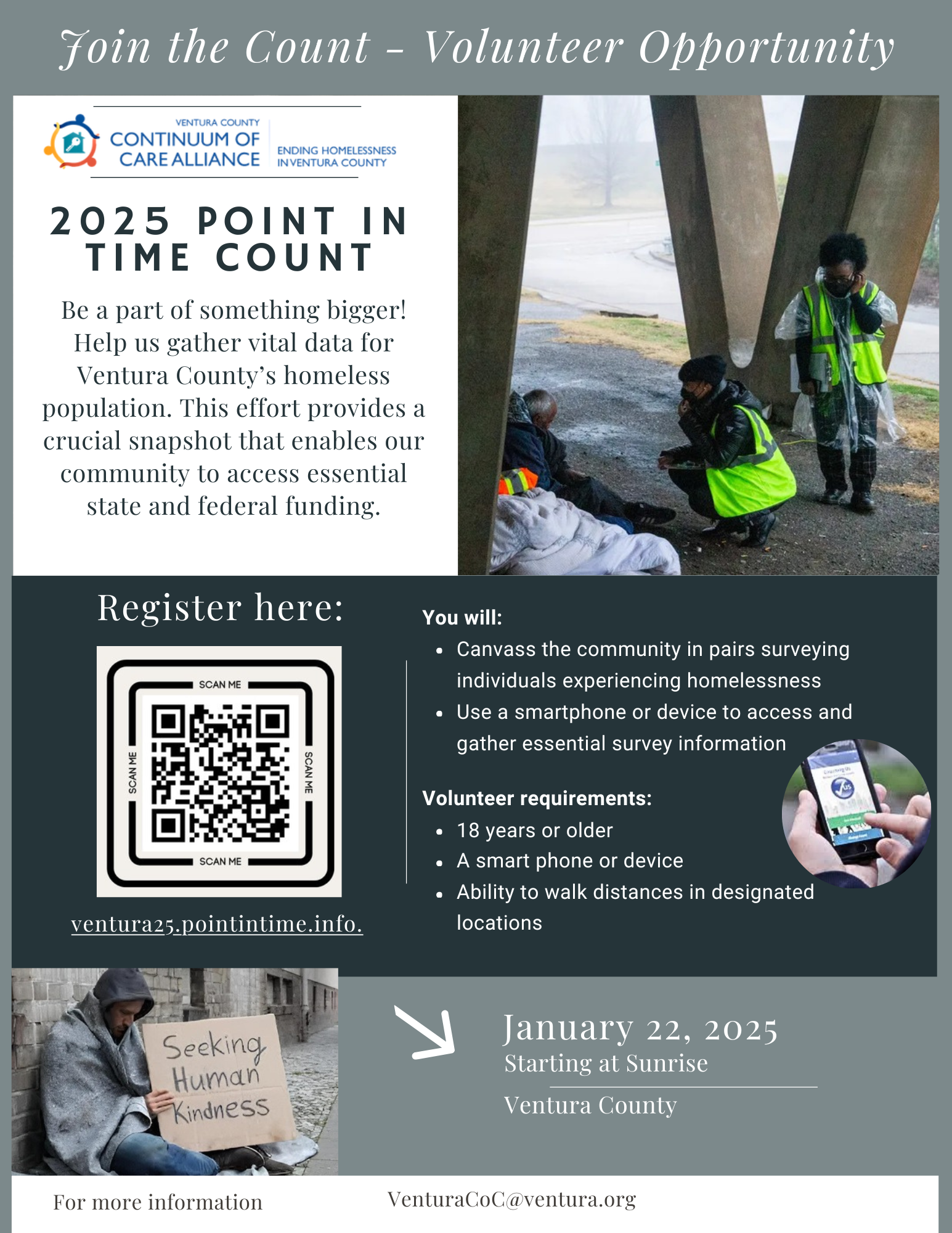 For more information about the count, visit www.venturacoc.org or email VenturaCoC@ventura.org.