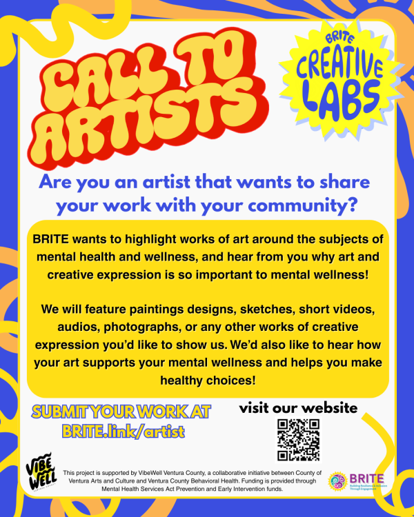 Are you an artist that wants to share your work with your community? Be a part of our new VibeWell project, BRITE Creative Labs, a new Ventura County initiative where creativity meets mental health—no judgment, just real talk through art, performance, and storytelling.