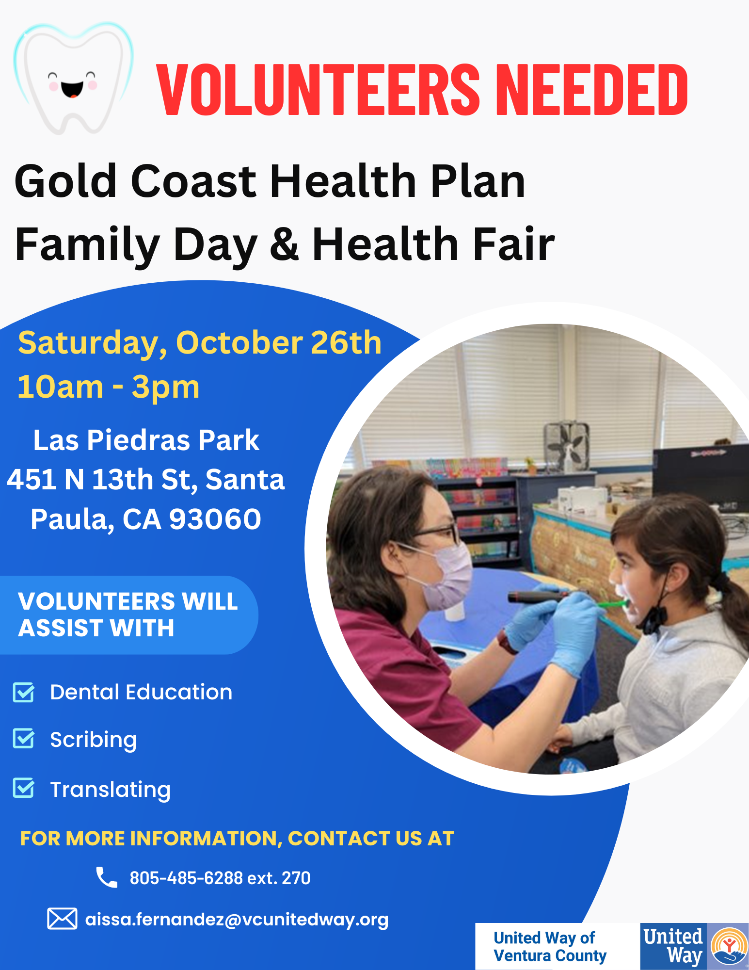 Gold Coast Health Plan is hosting a health fair, and we need volunteers to assist with dental screenings. Volunteers will either be helping with oral health education or scribing for our dentists. Volunteers do not have to stay the entire time, they can sign up for the following shifts: